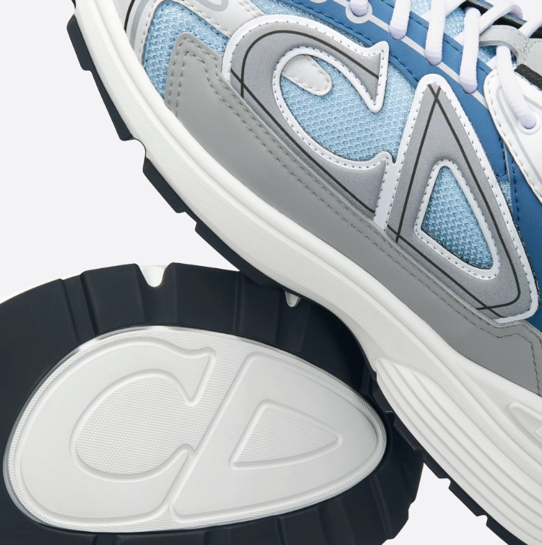 De lage B30-sneaker is inmiddels een echte klassieker van het House of Dior en kenmerkt zich door een modern en sportief silhouet. Dit model is vervaardigd van lichtblauwe mesh en blauwe, grijze en witte technische stof en versierd met een reflecterend CD30-kenmerk voor een grafische touch. De B30-sneaker is ook voorzien van zilverkleurige Dior B30- en CD30-kenmerken op de tong en hak. De superlichte, gemodelleerde rubberen zool is geaccentueerd met diverse kenmerkende details, terwijl een elastische binnenkant voor optimaal comfort zorgt. De B30-sneaker rondt elke casual outfit fraai af.